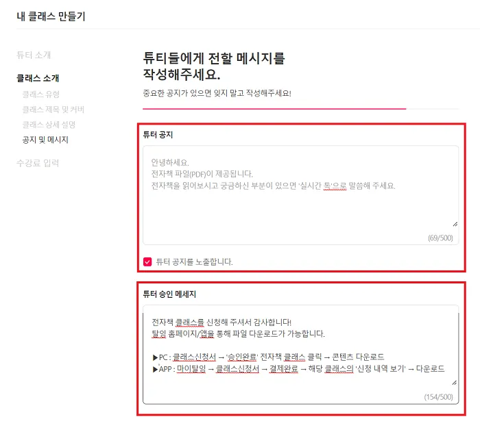 튜터 공지나 승인 메시지로 추가적인 안내!