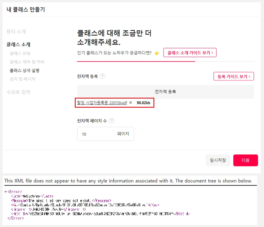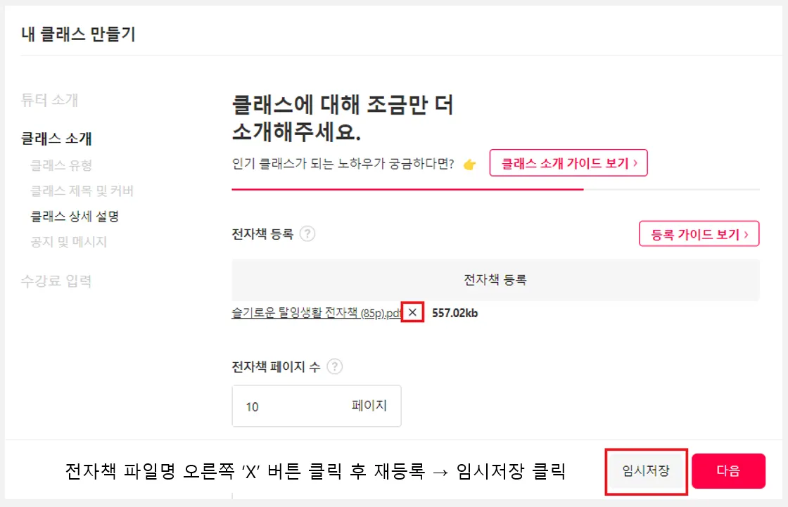 전자책 파일 재등록 후 임시저장을 눌러주세요.