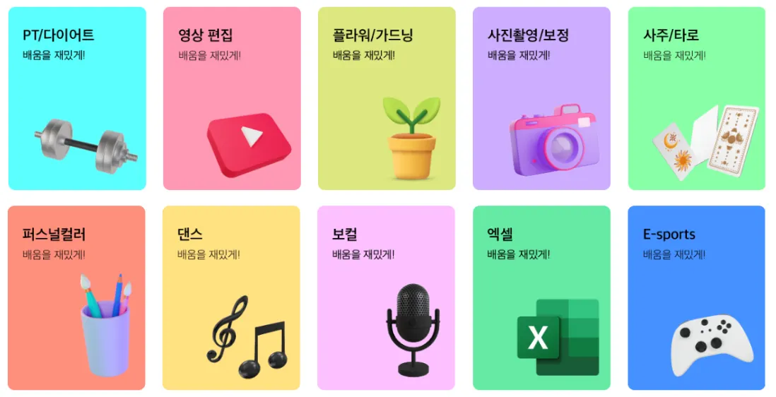 카테고리까지, 10개 클래스 카테고리의 배너가 탈잉 메인에서 노출되고 있습니다!