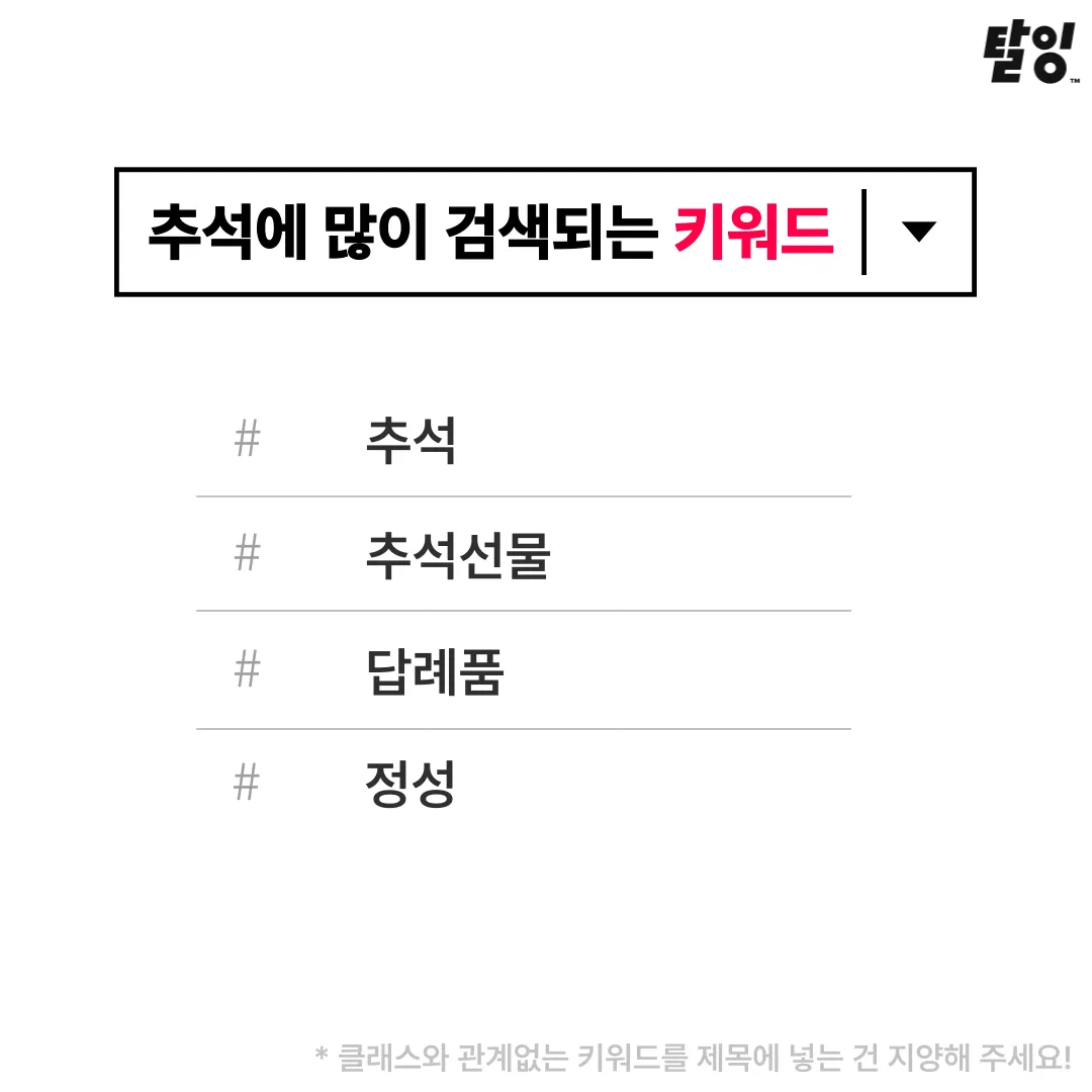 특히, 취미·공예 관련 클래스를 운영하시는 튜터님들은 추석 선물과 관련된 키워드를 넣으면 궁합이 좋을 것 같아요!