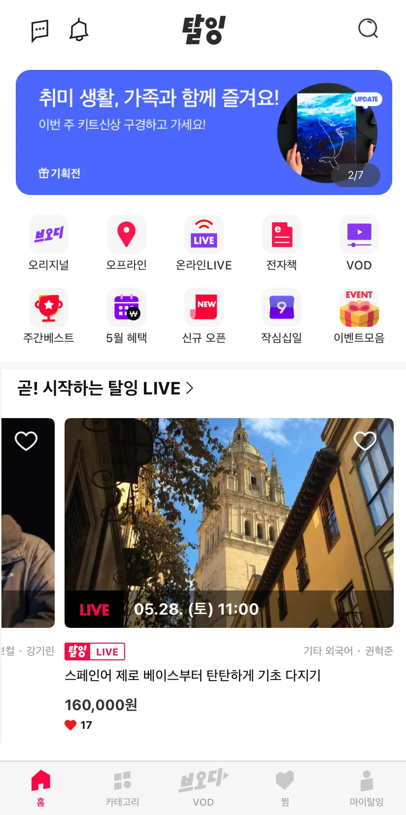 ‘곧! 시작하는 탈잉 LIVE’ 홈 구좌 추가